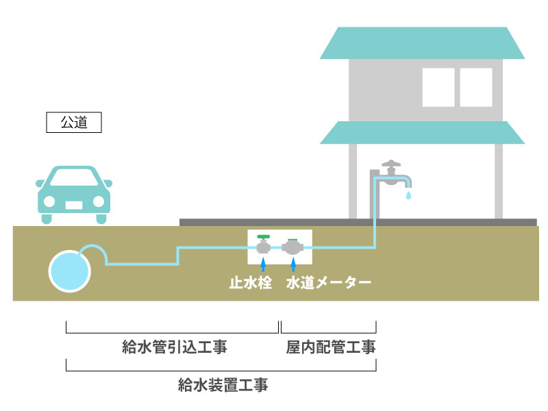 水道メーターから浴室やキッチンなどの水回り設備まで、水を供給・排水するための配管を施工する工事です。